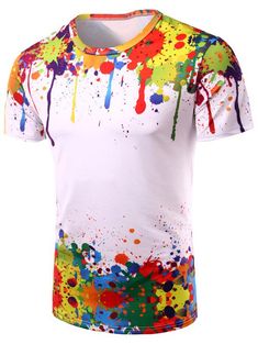 圆领3D多彩飞溅墨水打印短袖男士T恤